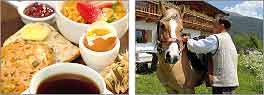 La colazione a buffet vi allieta con le nostre marmellate fatte in casa di lamponi, fragole e ciliegie. I vantaggi di una vacanza in agriturismo sono l'eccellente cucina, resa speciale dalle ricette casalinghe, e l'intimo servizio. Durante l'estate, il nostro giardino offre verdura ed erbe aromatiche e, inoltre, possiamo arricchire le proposte del menĂ¹ serale con finferli freschi e funghi porcini. La nostra sorgente privata ci fornisce l'acqua potabile.